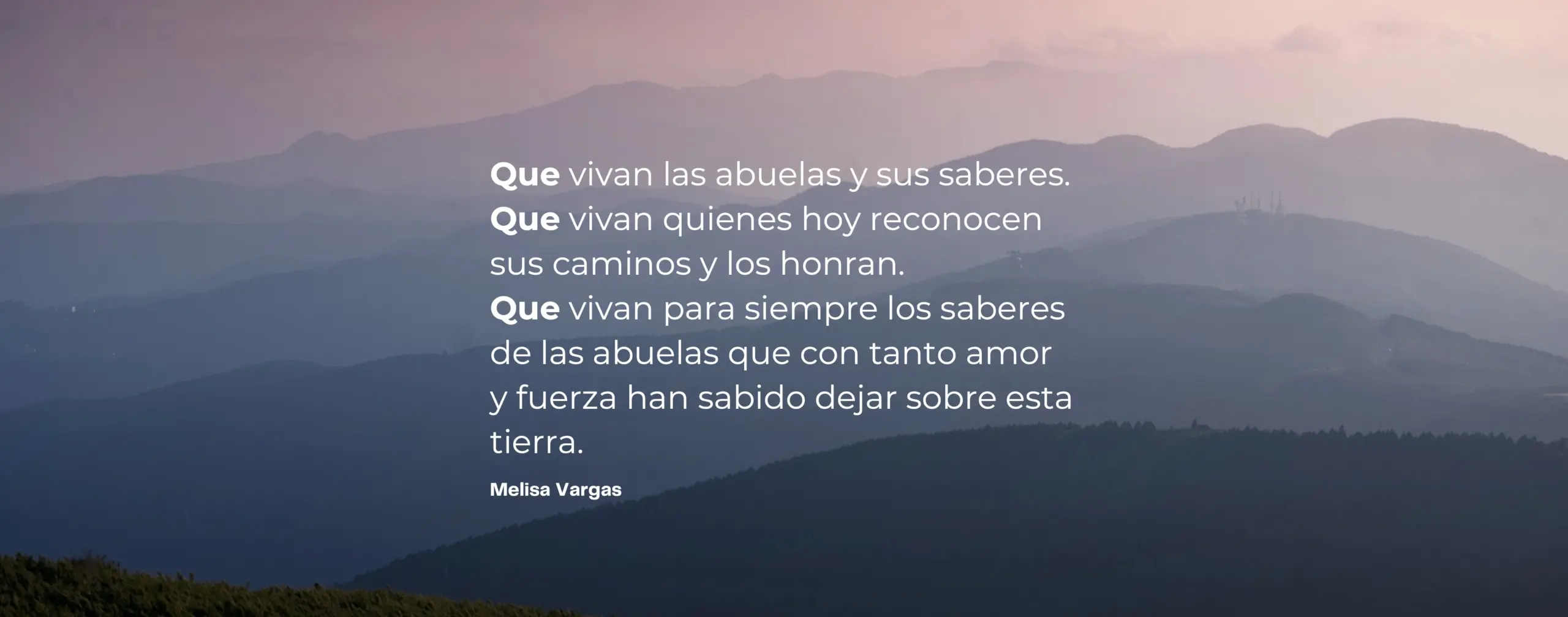 Through these words, I want to pay tribute to you for the ancestral wisdom you have acquired over generations and, which sometimes emerges from all the trials life has thrown at you. Your wisdom has been my refuge in the coldest winters. I believe you don’t realize the impact your teachings have had on many of my projects, which is why this tribute is so important to me.
